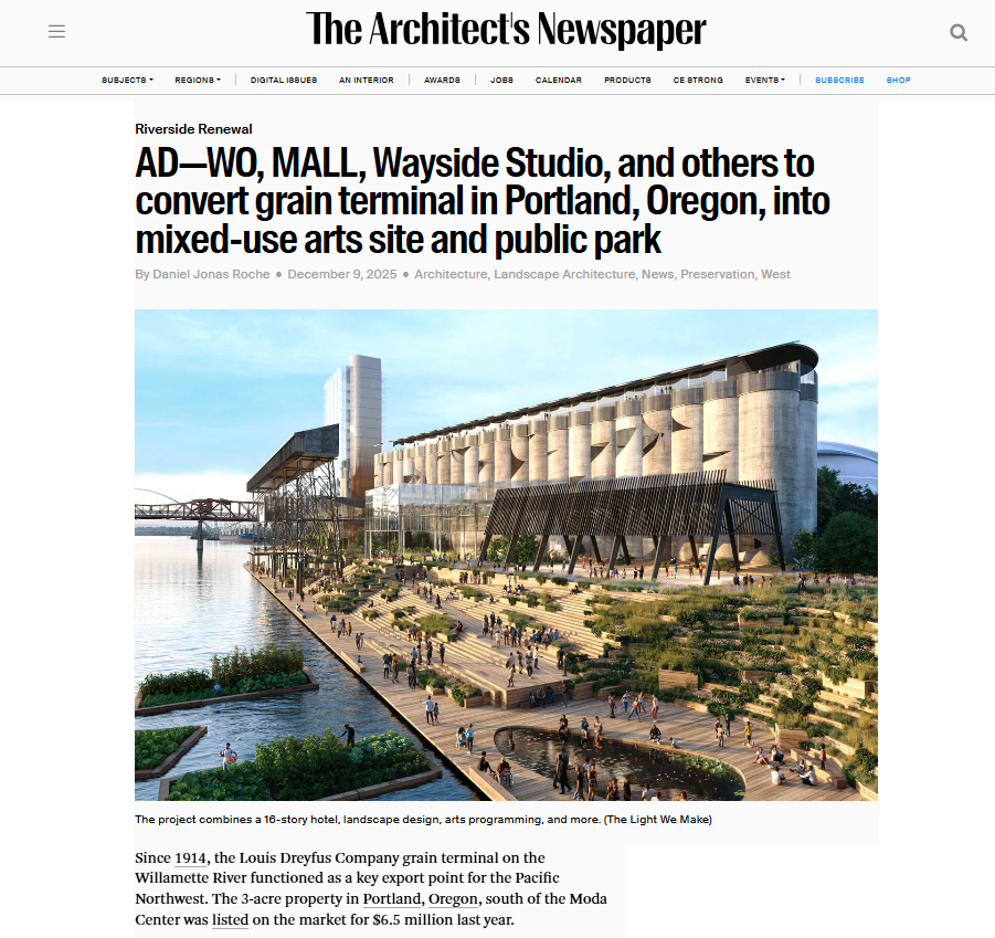 Jennifer Bonner / MALL completes Concept Design phase for the 1803 Fund for the Albina Riverside and The Low End projects located in Albina, Portland. Architect’s Newspaper. Dezeen. Oregon Public Broadcasting. Oregon Live.
